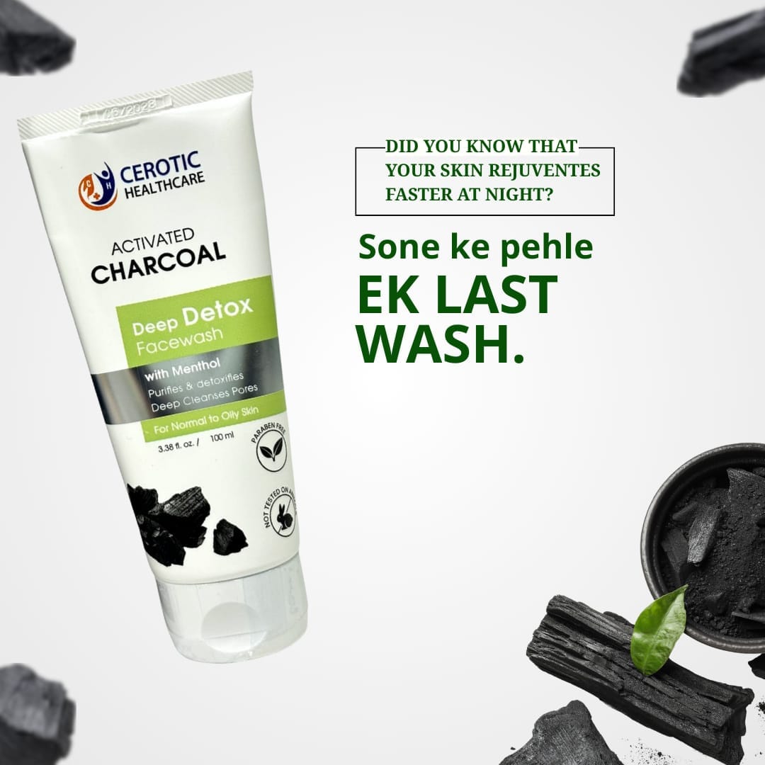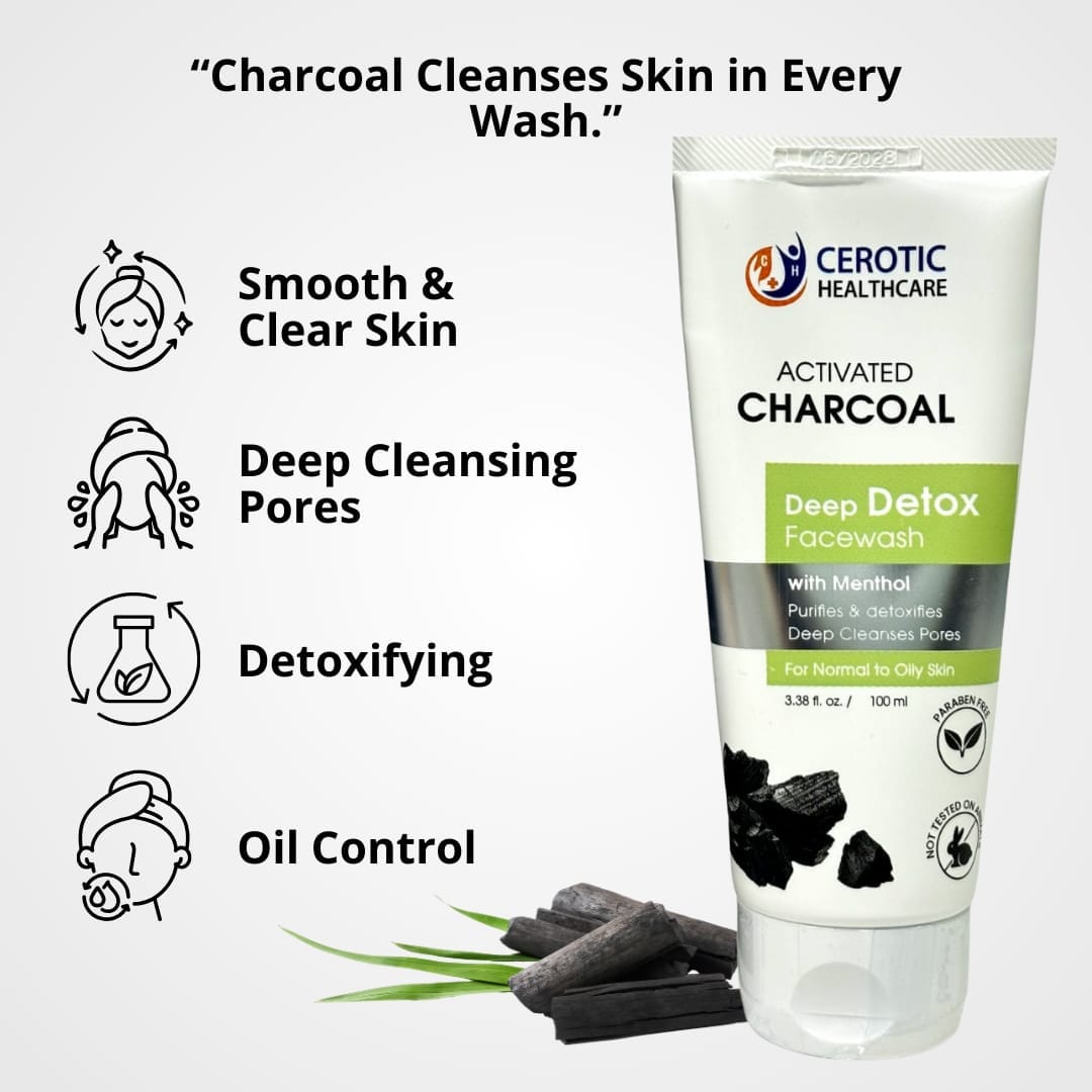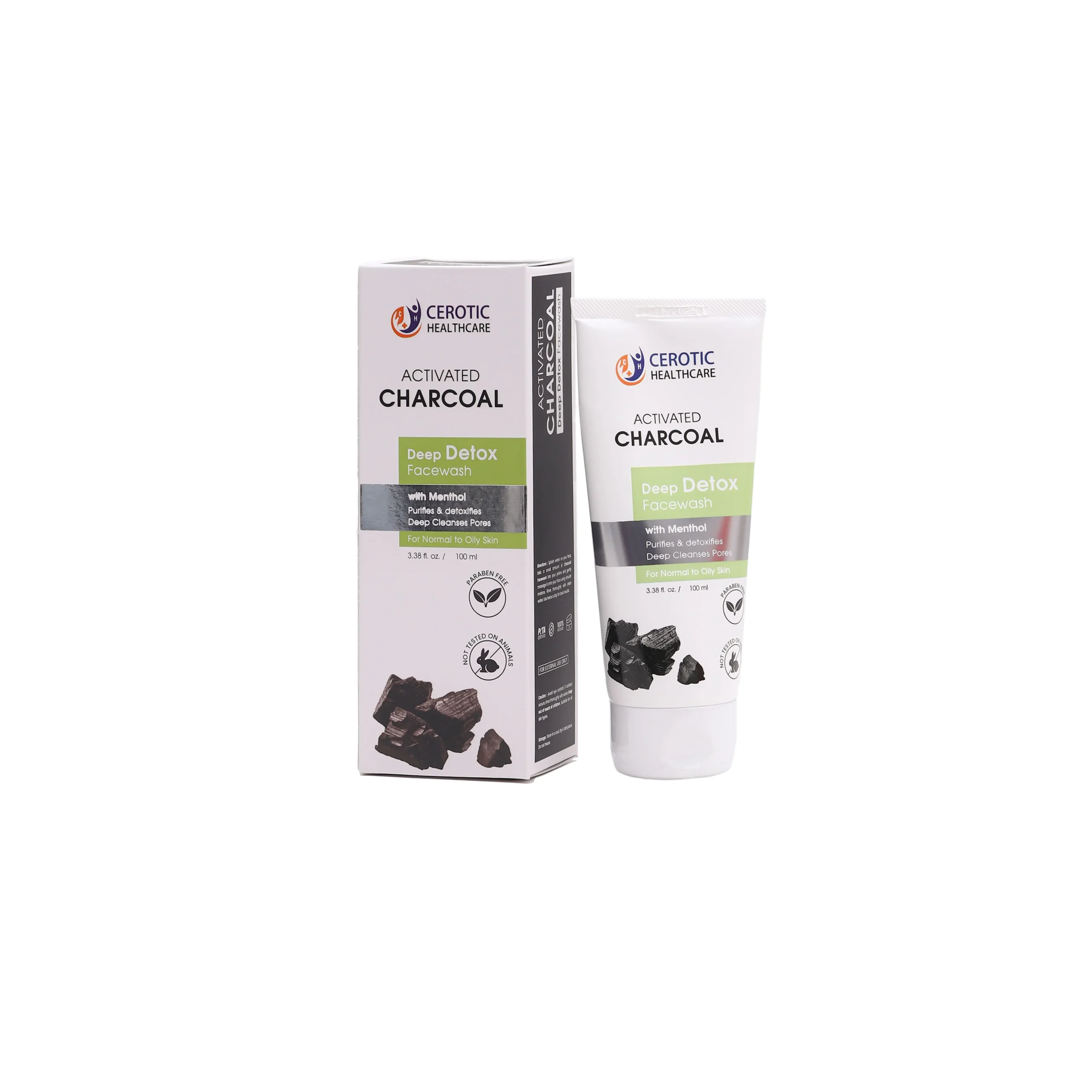 CEROTIC HEALTHCARE Activated Charcoal Deep Detox Facewash is a paraben-free formula with Menthol for a refreshing cleanse. It effectively purifies, detoxifies, and deep cleanses pores, making it ideal for Normal to Oily Skin.