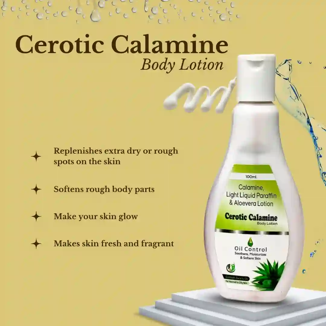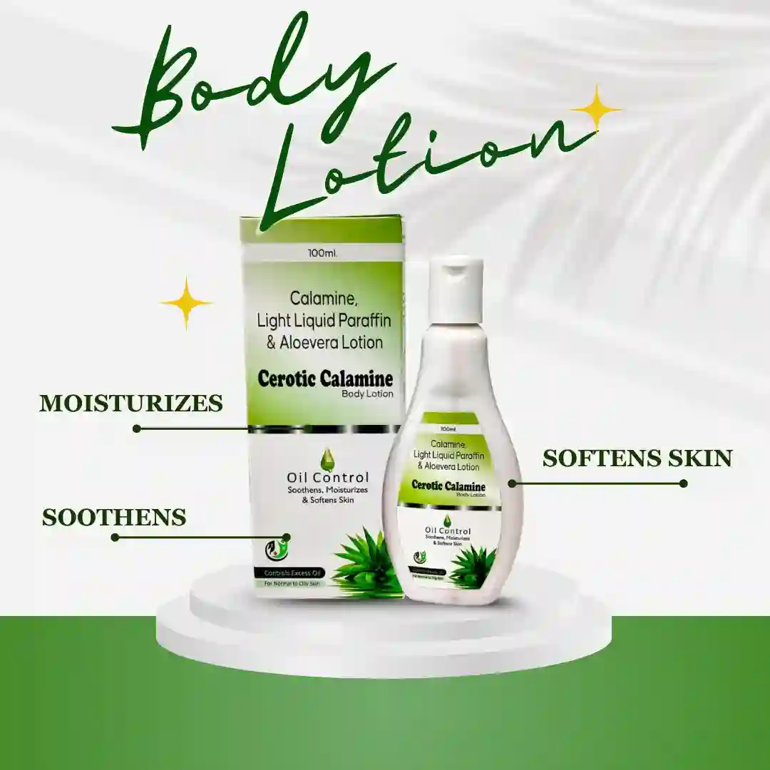 Cerotic Calamine Body Lotion is an Oil Control formula enriched with Calamine, Light Liquid Paraffin, & Aloe Vera. It’s designed to soothe, moisturize, and soften skin while controlling excess oil. This body lotion is ideal for Normal to Oily Skin types.