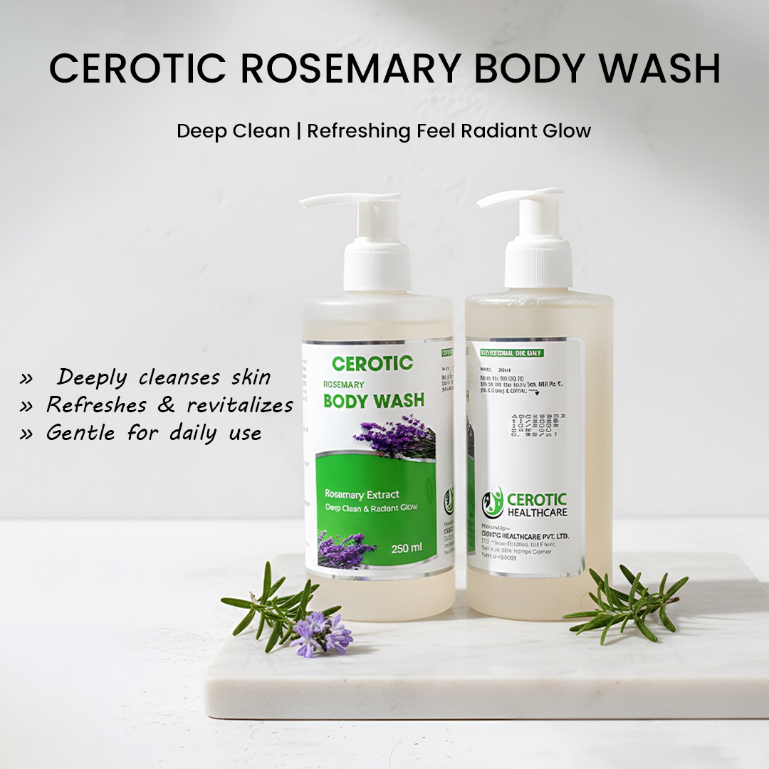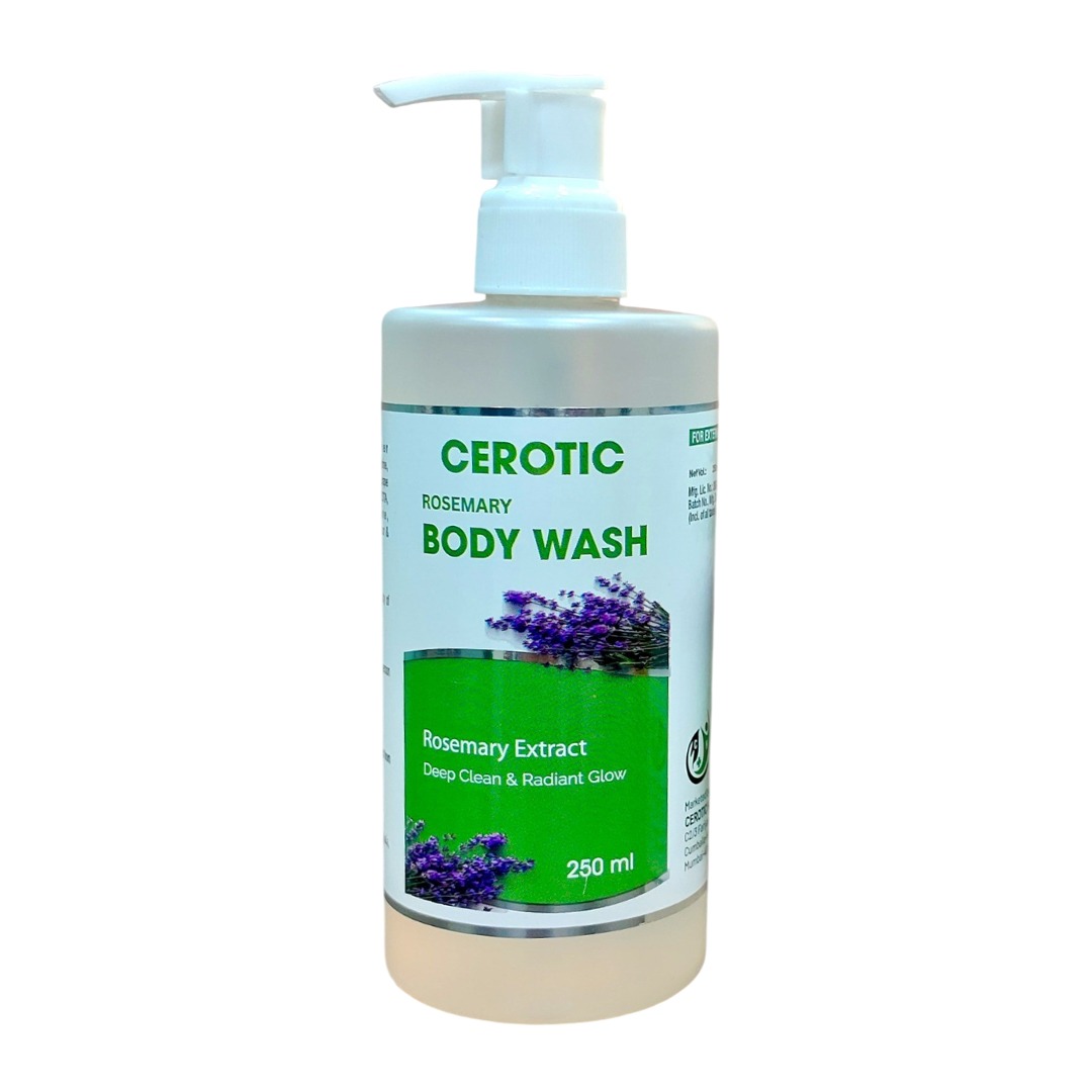 CEROTIC Rosemary Body Wash is a refreshing, paraben-free formula infused with Rosemary Extract for a deep yet gentle cleanse. It helps remove impurities, refresh the skin, and enhance natural glow, making it suitable for daily use and all skin types.