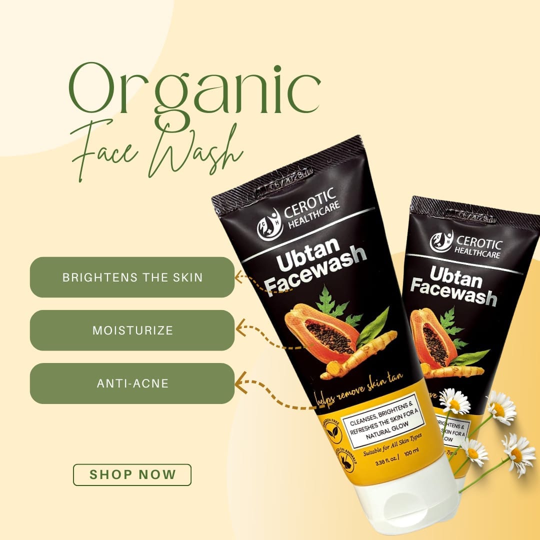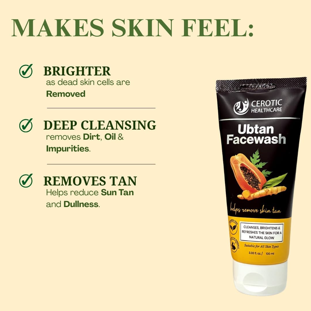 CEROTIC HEALTHCARE Ubtan Facewash is a natural, paraben-free formula that cleanses, brightens, and refreshes the skin for a natural glow. Specially designed to help remove skin tan, this facewash is suitable for all skin types.